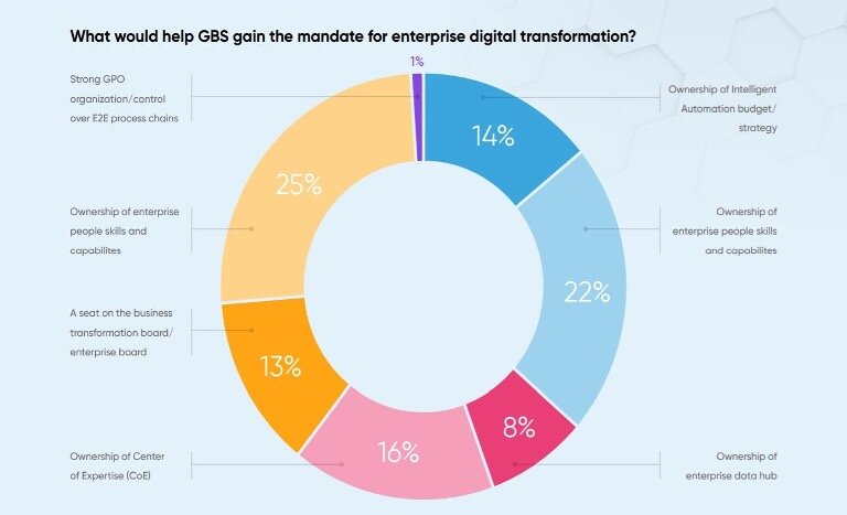 По данным SSON, только 33% центров GBS имеют всесторонний мандат цифровой трансформации на уровне всей компании.